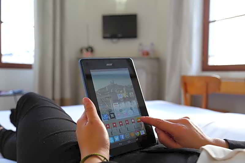 With sloped ceilings, this air-conditioned room offers a flat-screen TV and a private bathroom with a shower, hairdryer and free toiletries. The room starts at standard hight of 6.6 feet and that same hight decline to become 5.2 feet